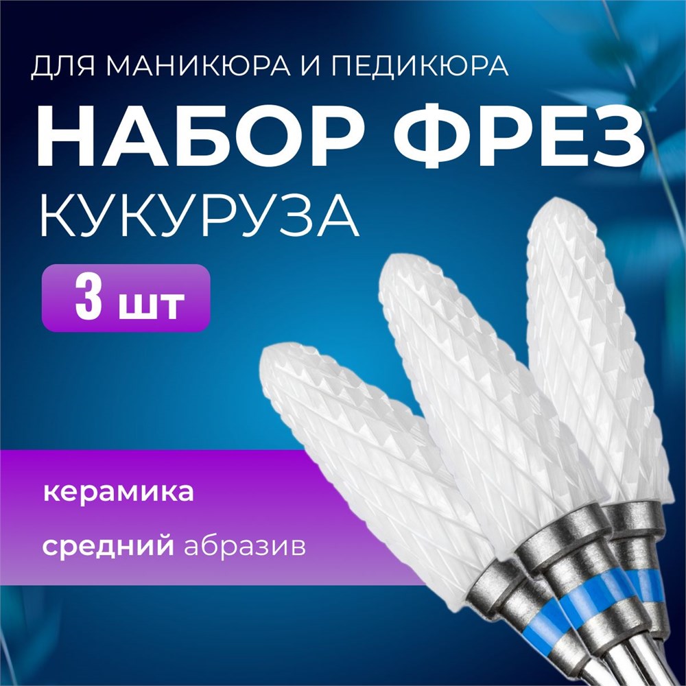 Набор из трех фрез для маникюра и педикюра "Кукуруза" средней абразивности, изготовленных из керамики с доставкой по всему Таджикистану: Душанбе, Худжанд, Бохтар и все города/районы.