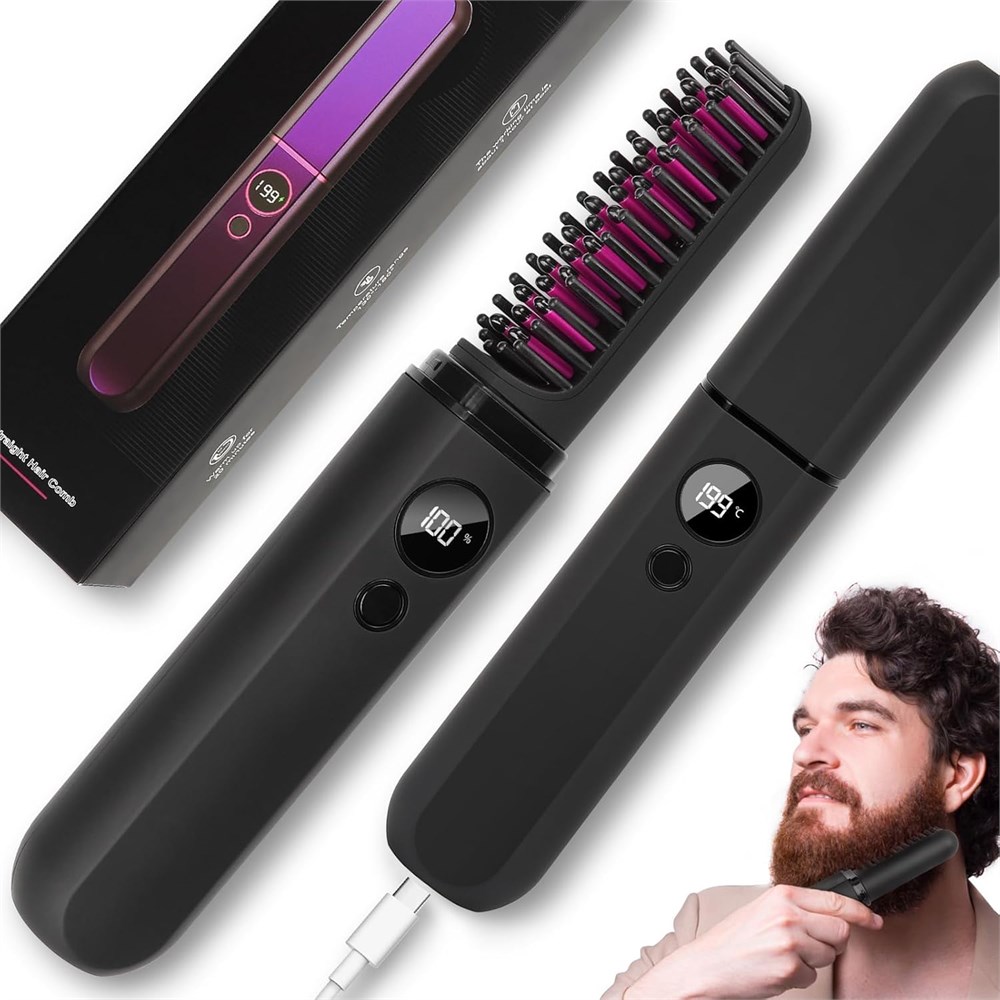 Беспроводная щетка-выпрямитель для бороды NALACAL для мужчин, защита от ожогов, 3 температурных режима и ЖК-дисплей, портативная щетка с подогревом, подходит для бород любой длины и длины.