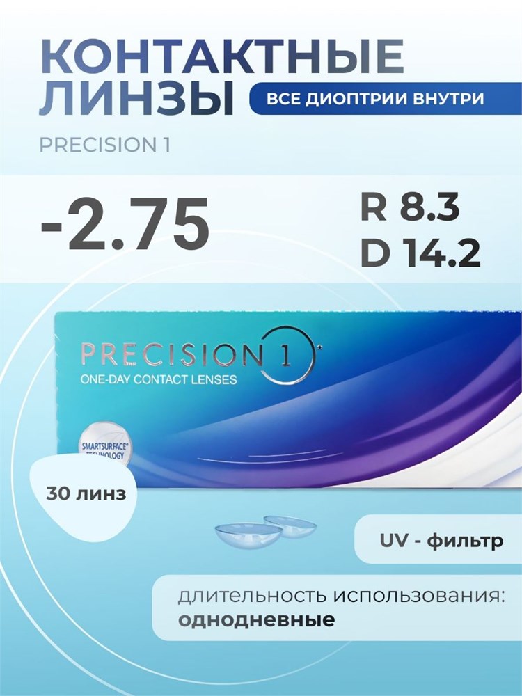 Линзы Precision1 на один день, в упаковке 30 штук, с радиусом кривизны 8.3 и диоптриями -2.75.