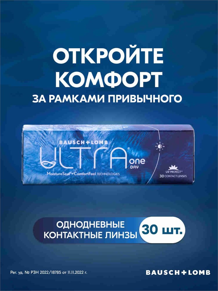30 штук однодневных линз BAUSCH + LOMB ULTRA ONE DAY с диоптрией -5.00 Бесплатная доставка по всему Таджикистану.