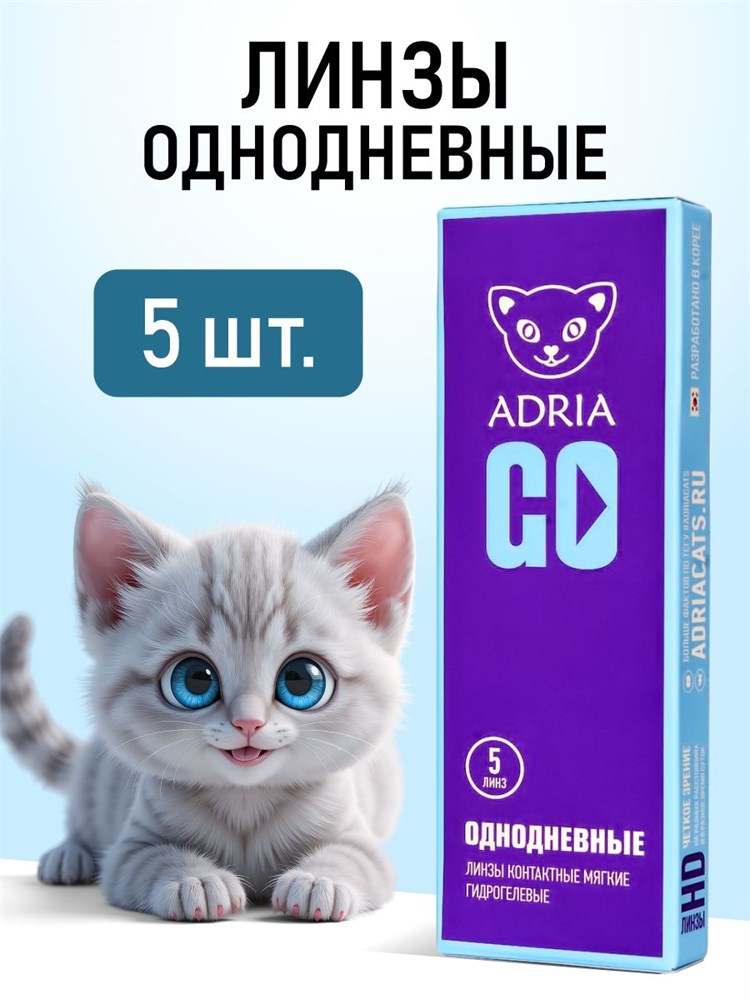 Пробные однодневные линзы ADRIA GO с диоптрией -2.00, в упаковке 5 штук. Бесплатная доставка по всему Таджикистану.