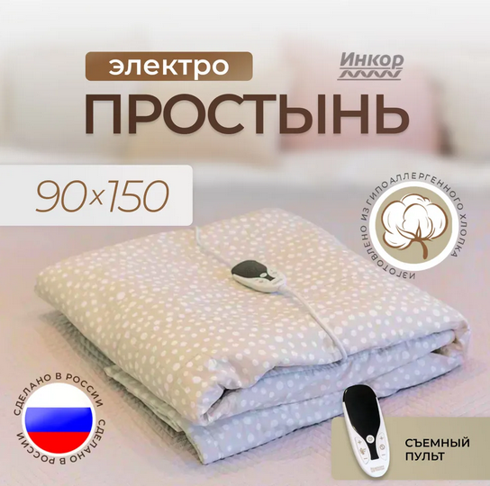 Односпальная электропростыня INKOR с подогревом, размер 150×90 см.
