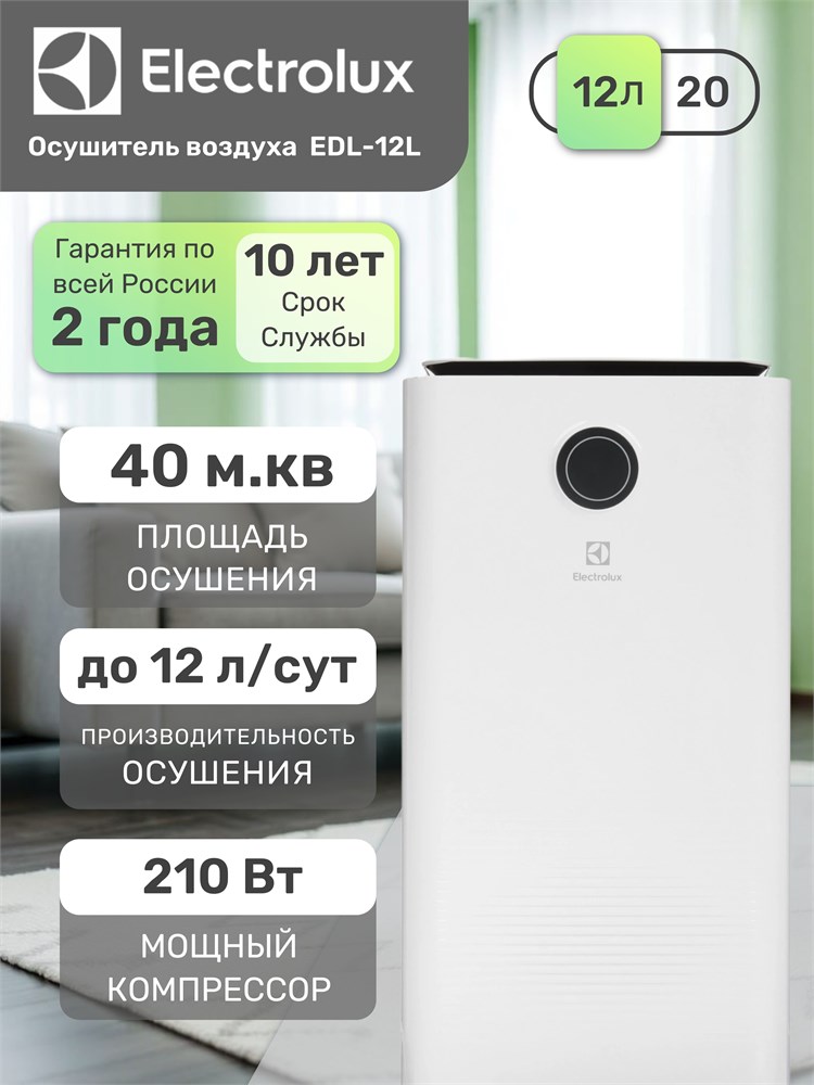 Осушитель воздуха Electrolux EDL-12L предназначен для помещений до 40 квадратных метров, таких как дом, квартира или подвал