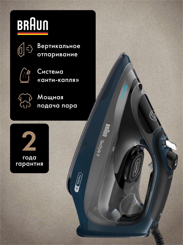 Утюг Braun TexStyle 9 SI9682DB работает на паре