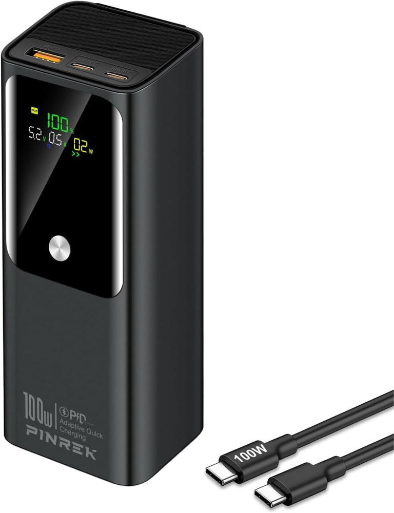 Внешний аккумулятор PINREK 20000 мА·ч, PD 100 Вт, быстрая зарядка, портативный, с 2 портами USB-C и 1 портом USB-A, аккумулятор, совместимый с ноутбуками MacBook, Galaxy S25/S24/S23, iPhone 16/15/14/13