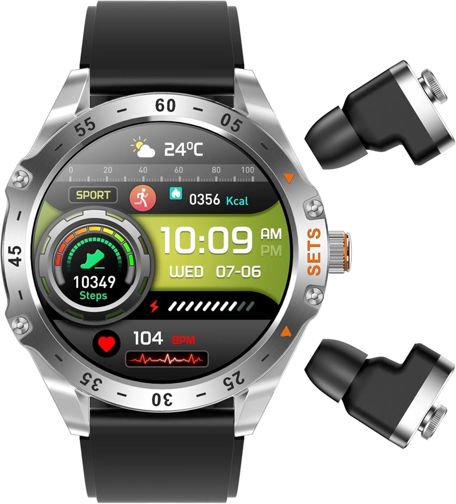 Умные часы Porodo Hype с черным циферблатом, наушниками и коричневым кожаным ремешком