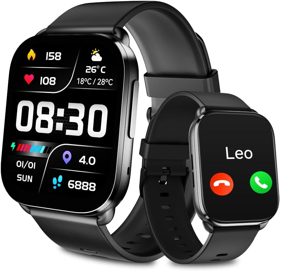 Смарт-часы QCY Watch GS, большой HD-дисплей 2,02 дюйма, сенсорный экран, Bluetooth-звонки, более 100 спортивных режимов, водонепроницаемые фитнес-часы IPX8 с датчиком пульса и уровня кислорода в крови, функцией мониторинга сна, быстрой зарядкой