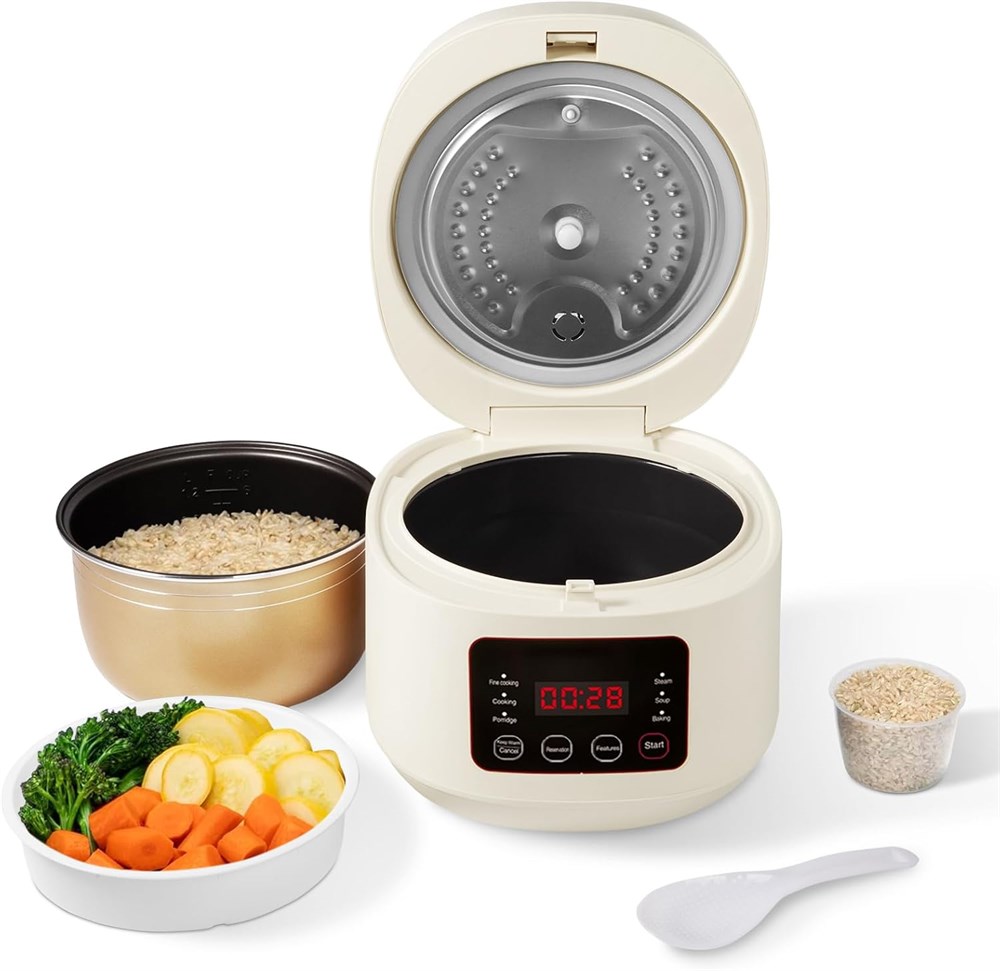 Рисоварка, 3 л, умная, многофункциональная, с функцией приготовления на пару и варки, автоматический запуск через 24 часа, подходит для 3-5 человек, поддон для приготовления на пару, мерные стаканчики и ложка (белая)