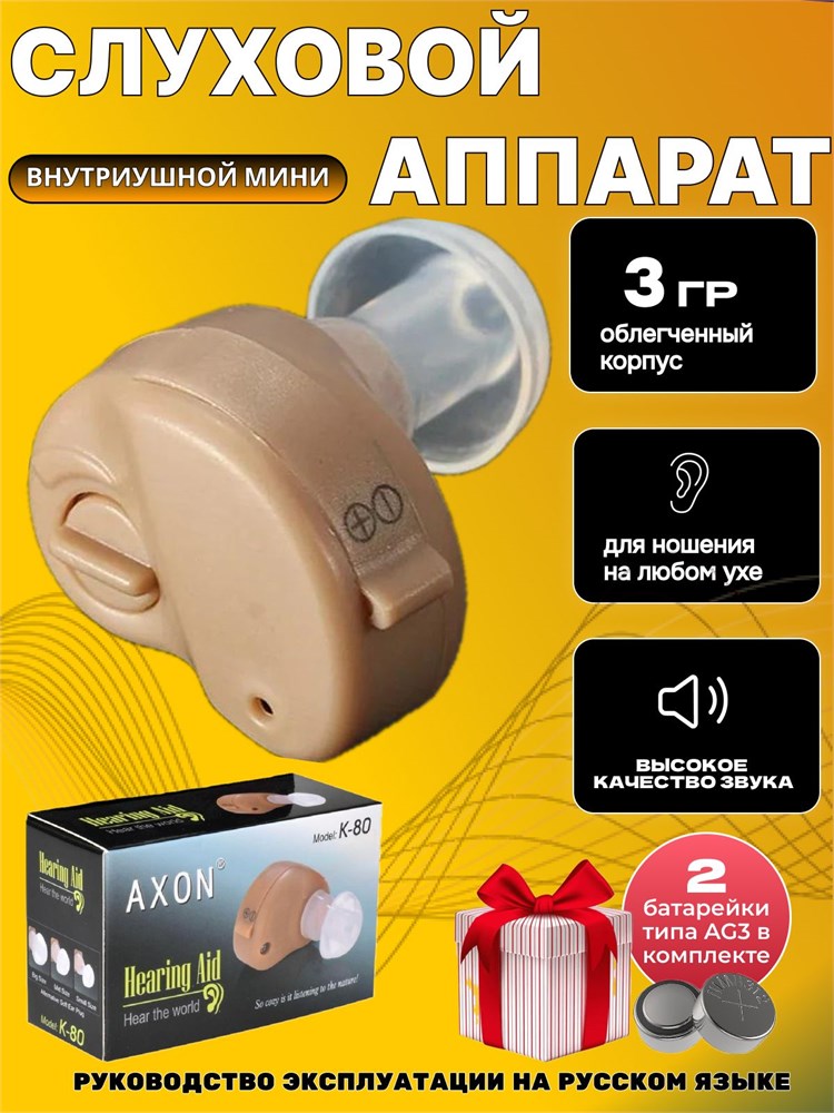 AXON 3 - это слуховой аппарат, который усиливает звук для людей пожилого возраста и с проблемами со слухом, работающий на батарейке.