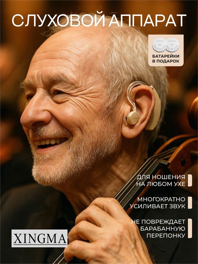 XINGMA 1 - это слуховой аппарат, который увеличивает громкость звука для людей пожилого возраста и с проблемами слуха, работающий от батарейки.
