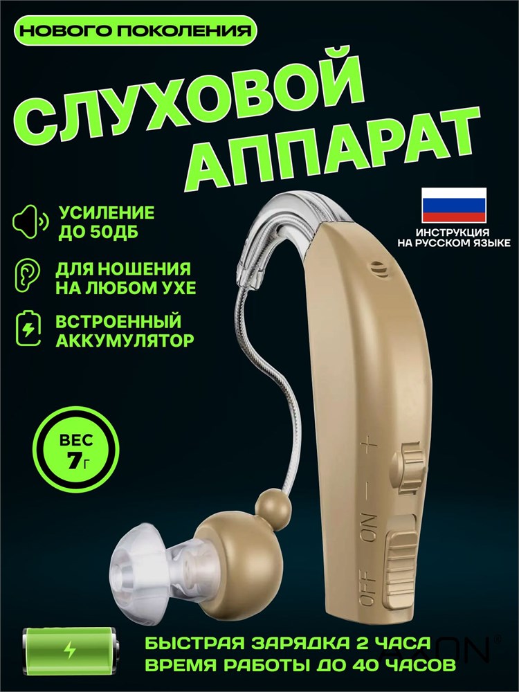 Слуховой аппарат AXON 1 - это устройство, которое усиливает звук для людей пожилого возраста и с проблемами слуха, и может быть заряжено.