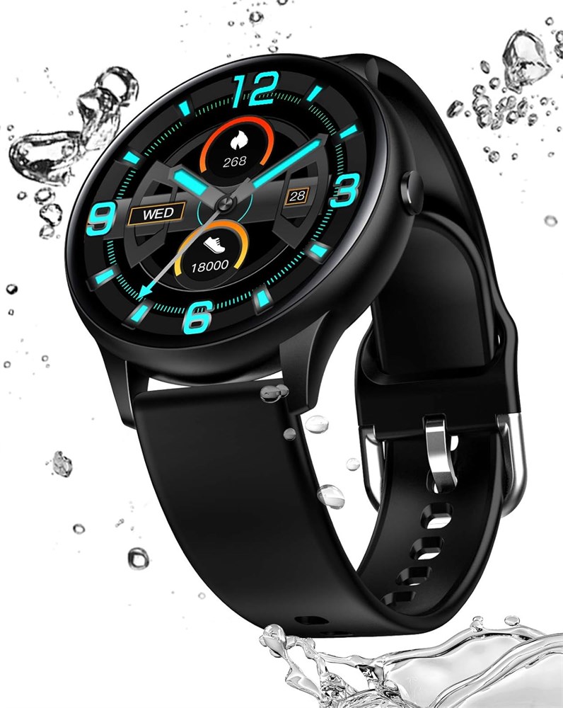Умные часы с фитнес-трекером, пульсометром, датчиком температуры тела, артериального давления, шагомером, счетчиком калорий, водонепроницаемым монитором сна для мужчин/женщин/подростков (черный)