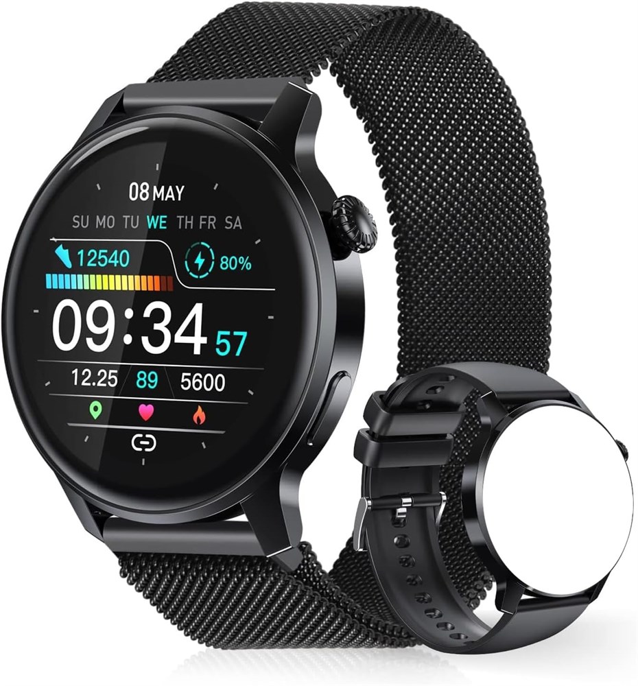 Умные часы для мужчин и женщин, фитнес-трекер с функцией телефонных звонков, умные часы для телефонов Android и iOS, монитор здоровья, пульсометр, счетчик калорий для сна, шагомер, напоминания, многоспортивные режимы, подключение по Bluetooth (черный)