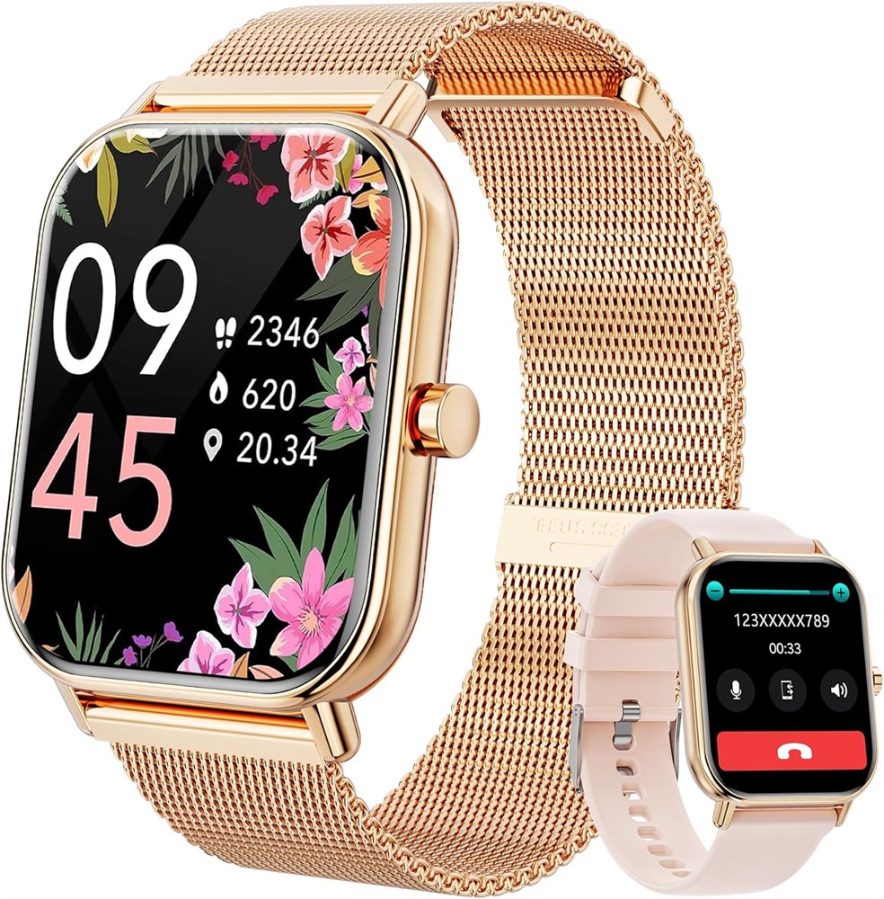 Умные часы для женщин и мужчин, фитнес-трекер, совместимый с телефонами Android и iPhone, 1,85-дюймовые умные часы для женщин и мужчин с датчиком кислорода в крови, пульсометром, более 110 спортивными режимами (2 ремешка)