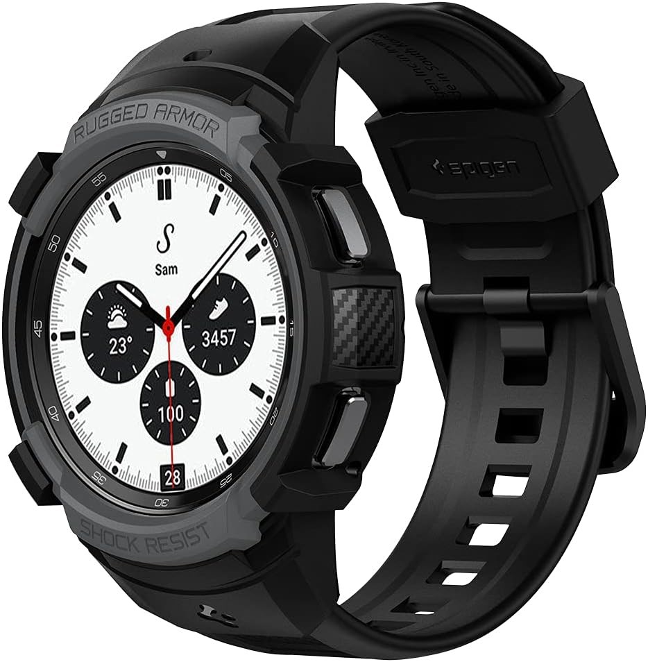 Spigen Rugged Armor Pro, разработанный специально для Galaxy Watch 4 Classic, с ремешком 42 мм — цвет «угольно-серый»