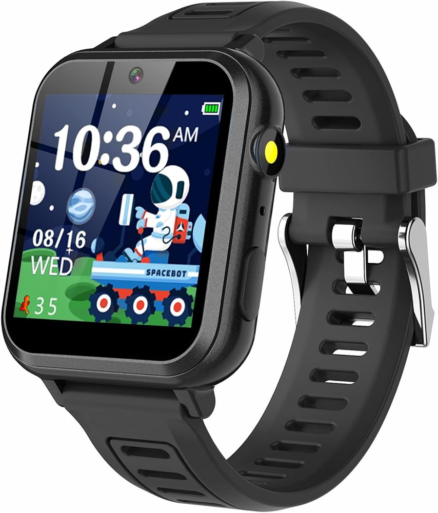 Умные часы SUKILO Kids для мальчиков и девочек с видеокамерой, музыкальным плеером, 24 играми, шагомером, будильником, калькулятором, фонариком, сенсорным экраном, 12/24-часовым режимом отображения времени, игрушками для детей 4-12 лет. Подарок на день ро