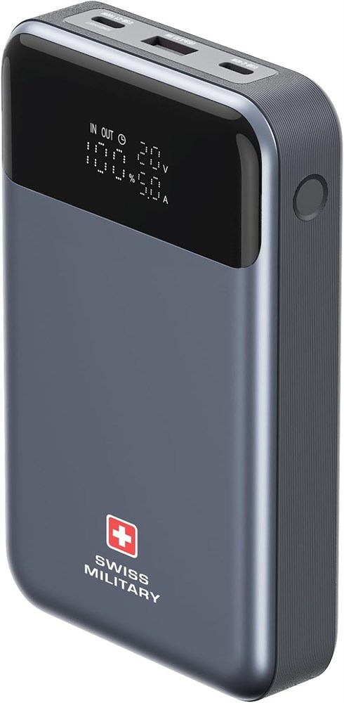 Портативный внешний аккумулятор Swiss Military 20000 мА·ч, 140 Вт (кабель премиум-класса 60 Вт в комплекте) — 100 Вт USB-C PD, три выхода, цифровой дисплей, подходит для использования в самолетах. Подходит для MacBook Pro, Dell XPS, iPad, iPhone, Samsung,