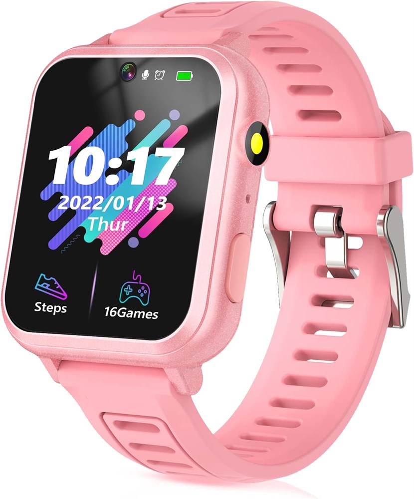 Умные часы SZBXD для детей, детские часы-игрушки с 16 играми, видеокамерой, шагомером, музыкальным будильником и фонариком, розовые