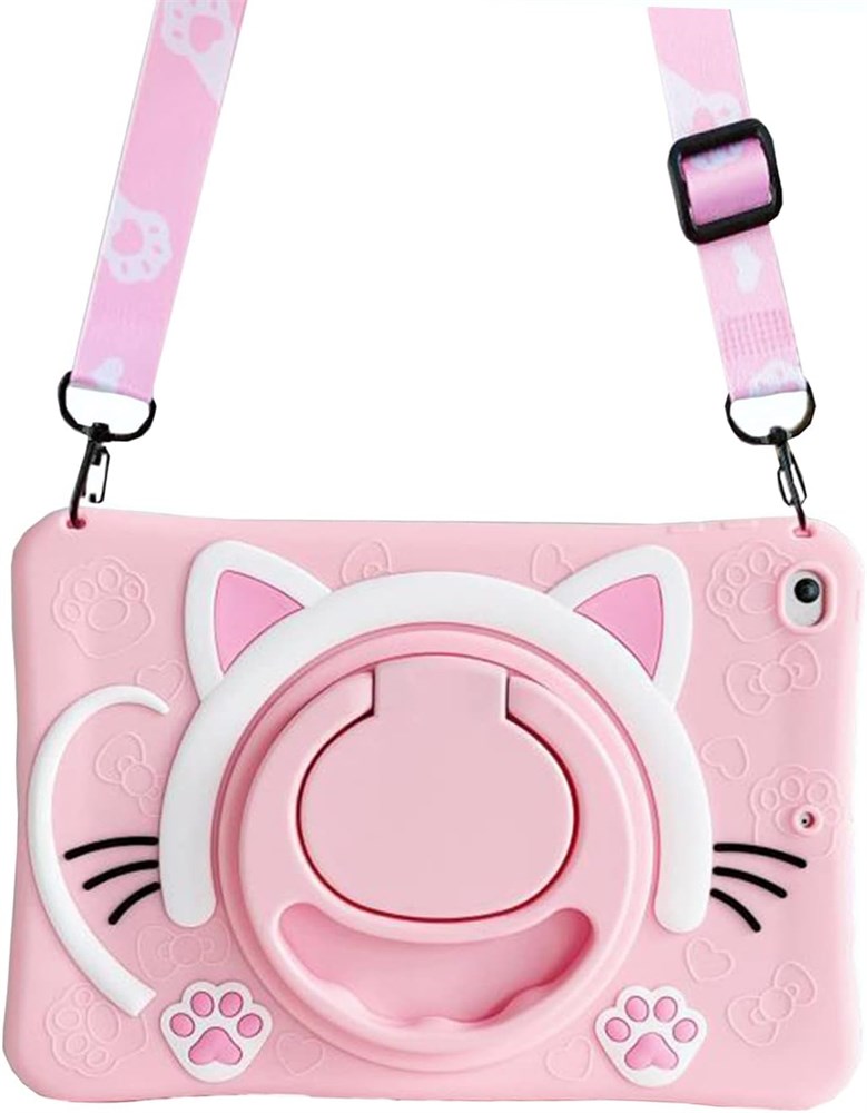 Чехол для планшета Samsung Galaxy Tab S6 Lite 10,4 дюйма 2022/2020 (SM-P610/P613/P615/P619) с поворотной подставкой на 360°/ручкой/плечевым ремнем, ударопрочный силиконовый чехол с милым котом (розовый) доставляем курьером по городам и районам Таджикистана.