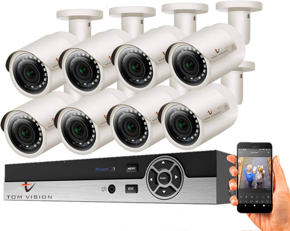 Система видеонаблюдения Tomvision 2K, 8-канальный 2-мегапиксельный видеорегистратор с 8 внутренними и наружными водонепроницаемыми камерами IP66 по 2,0 мегапикселя, домашняя безопасность P2P, ночное видение 100 футов, для домашнего бизнеса (комплект из 8