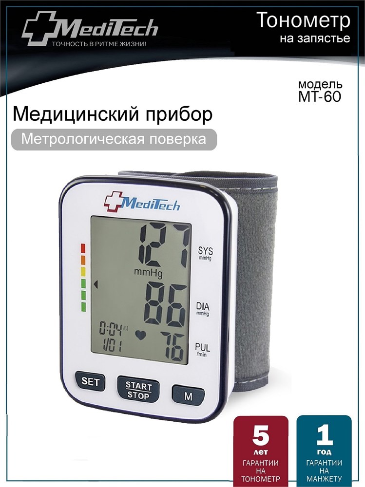 Автоматический тонометр MediTech МТ-60 предназначен для измерения давления на запястье.