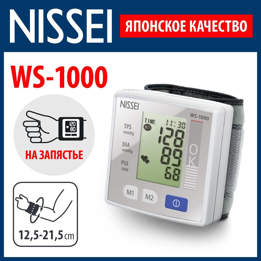 Автоматический тонометр Nissei WS-1000 предназначен для измерения давления на запястье.