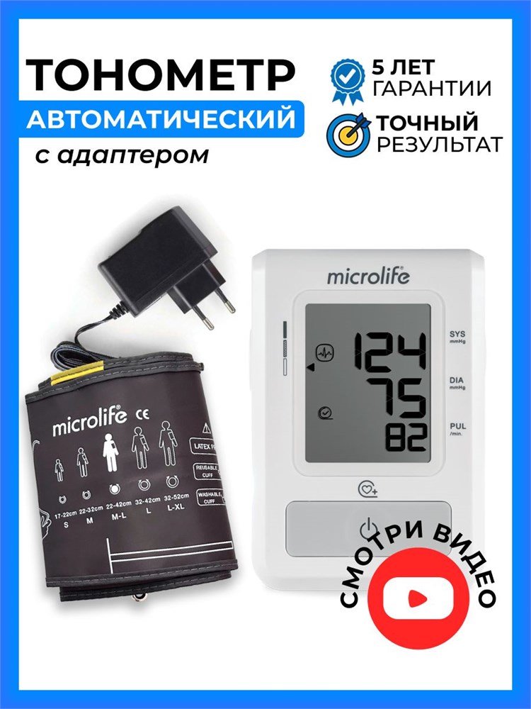 Автоматический тонометр с возможностью измерения давления, универсальная манжета для плеча размером от M до L (22-42 см), модель Microlife BP B2 Easy. Доставка этого товара осуществляем по всему Таджикистану.