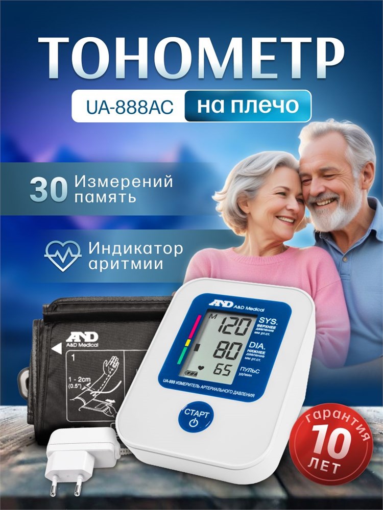 Автоматический тонометр с адаптером, подходит для обхвата руки от 23 до 37 см, модель AND UA-888 AC ЭКОНОМ, оснащенный дисплеем, предназначен для измерения артериального давления на плече. Доставка этого товара осуществляем по всему Таджикистану.