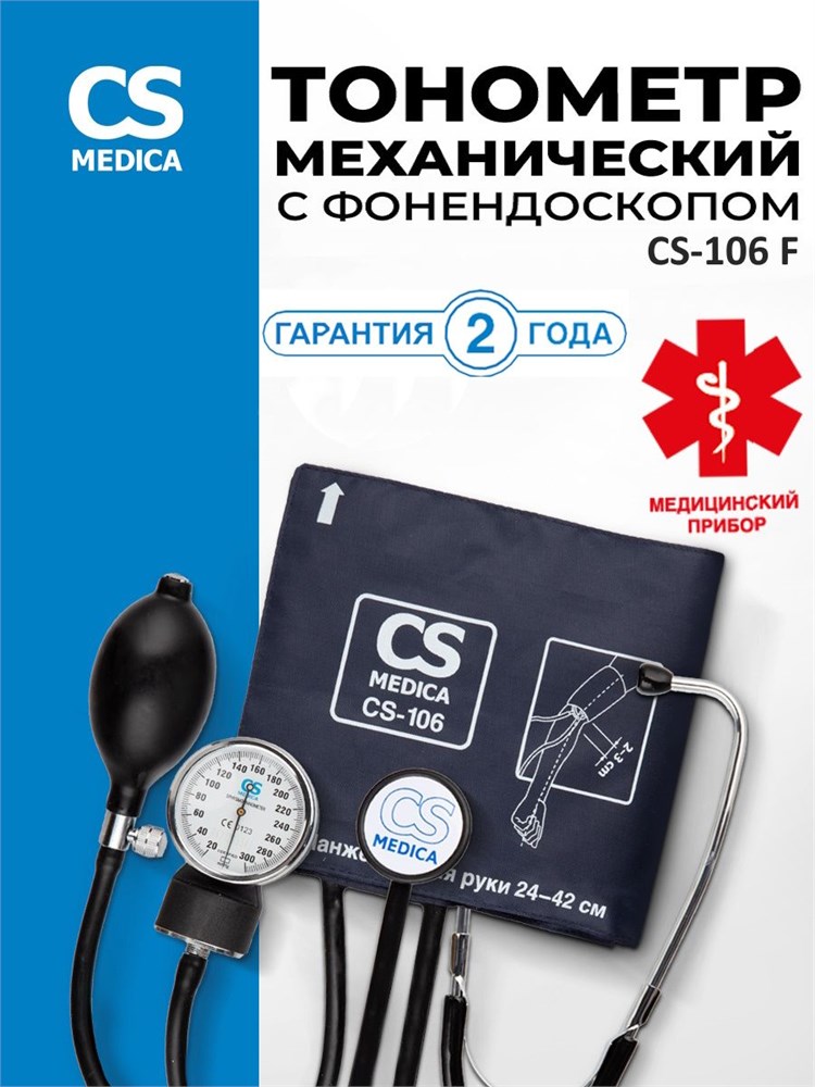 Медицинский прибор CS Medica CS-106 предназначен для измерения давления с помощью механического тонометра. Он оснащен фонендоскопом и имеет увеличенную нейлоновую манжету без фиксирующего кольца, которая подходит для окружности плеча от 24 до 42 см. Доставка этого товара осуществляем по всему Таджикистану.