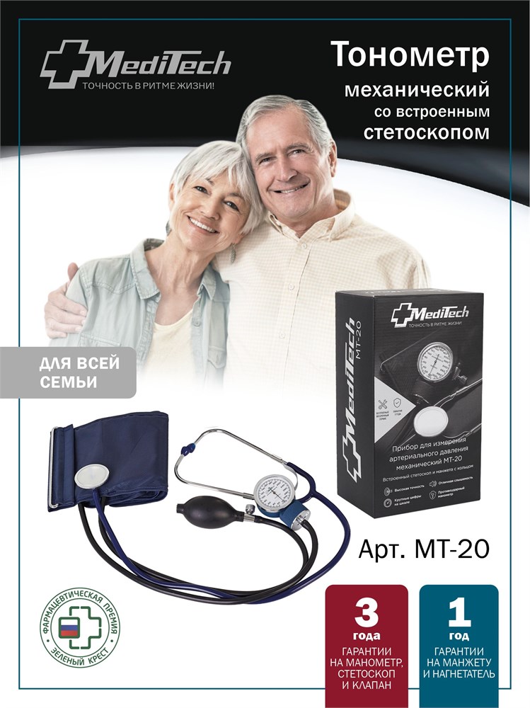 Медицинский прибор для измерения давления MediTech МТ-20 с встроенным стетоскопом - это механический тонометр.