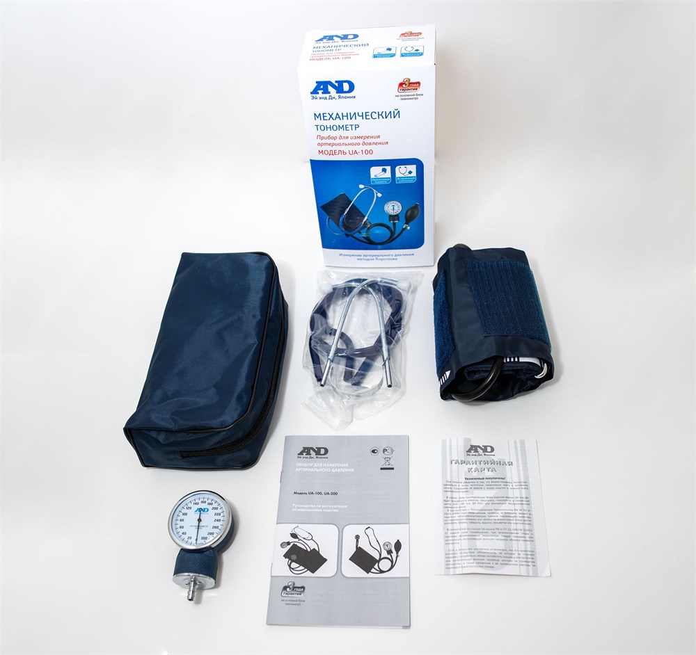 Тонометр UA-100 обладает механическим механизмом и встроенным стетоскопом.