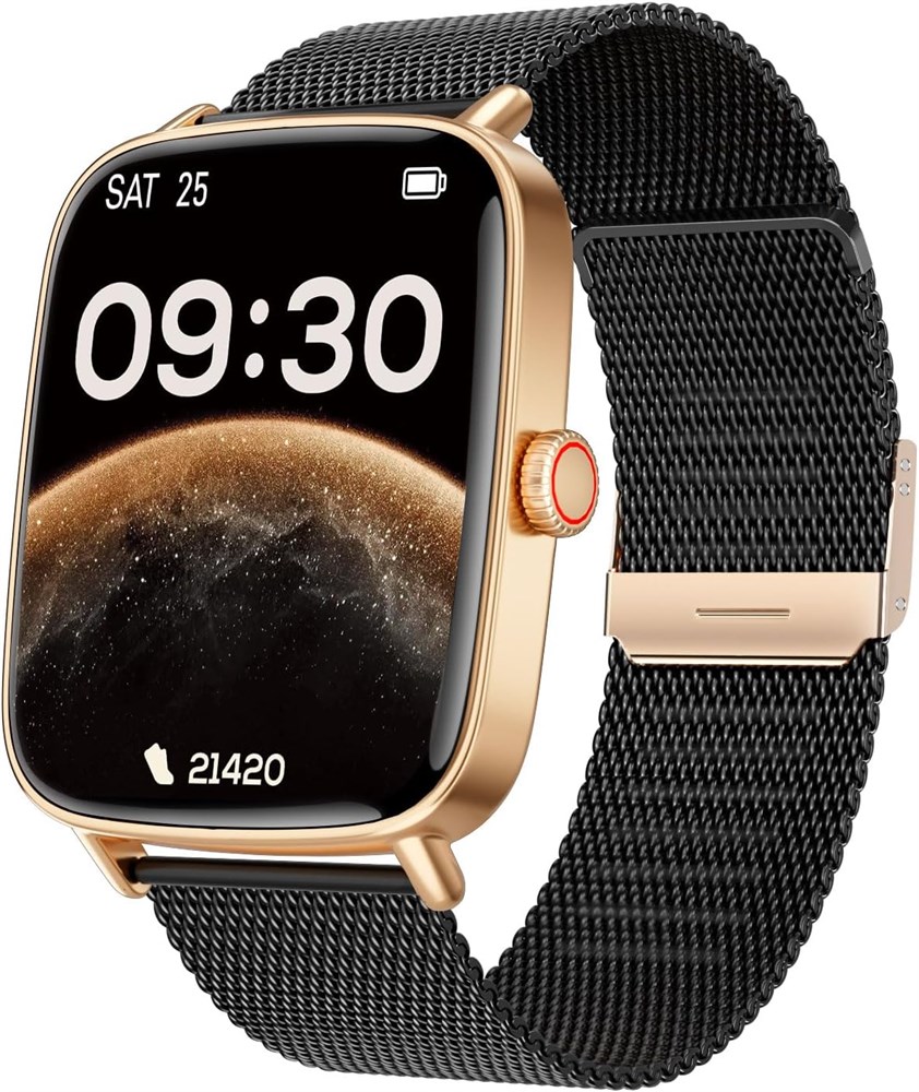 Умные часы TOOBUR для женщин, приём и совершение звонков, фитнес-трекер, отслеживание сердечного ритма и сна, 100 видов спорта, водонепроницаемость IP68, совместимые со смартфонами на Android и iOS, чёрно-золотые с доставкой по всему Таджикистану.
