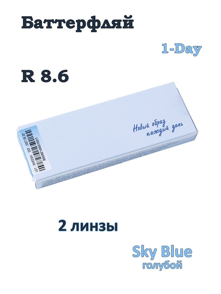 Две штуки цветных контактных линз Баттерфляй One Day Sky Blue с диоптриями -2.00 и радиусом кривизны 8.6. Бесплатная доставка по всему Таджикистану.