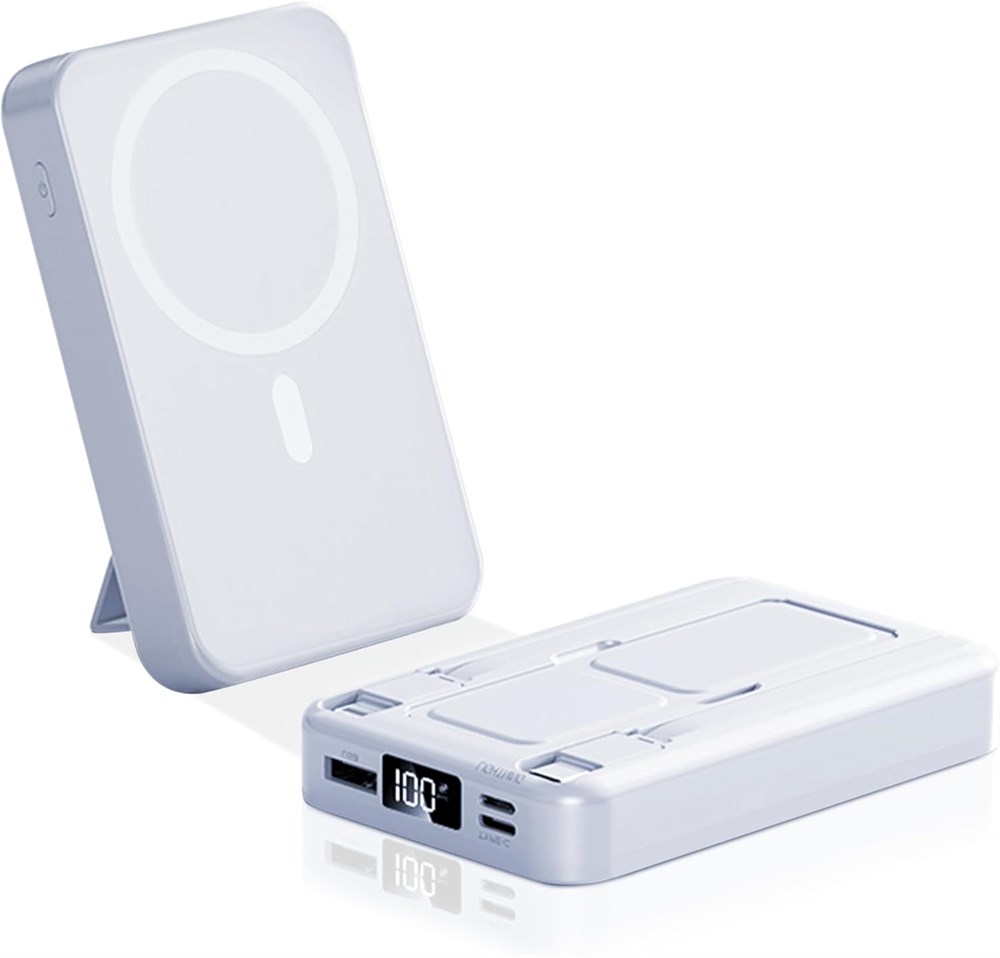 Ультратонкий внешний аккумулятор емкостью 10000 мА·ч с выходами USB-C и USB-A — компактный внешний аккумулятор со светодиодным дисплеем — портативное зарядное устройство с быстрой зарядкой для путешествий и активного отдыха