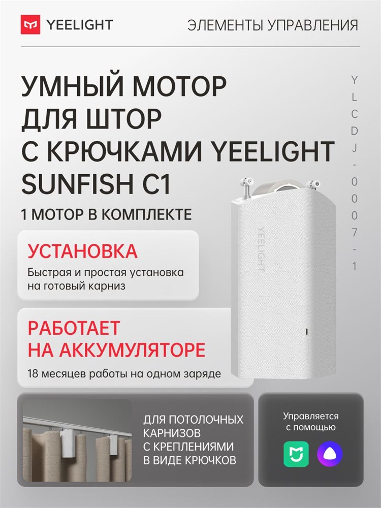 Интеллектуальный мотор для управления шторами Yeelight Sunfish-C1-track single motor с доставкой по всему Таджикистану: Душанбе, Худжанд, Бохтар, Хорог, Кульяб, все города и районы.