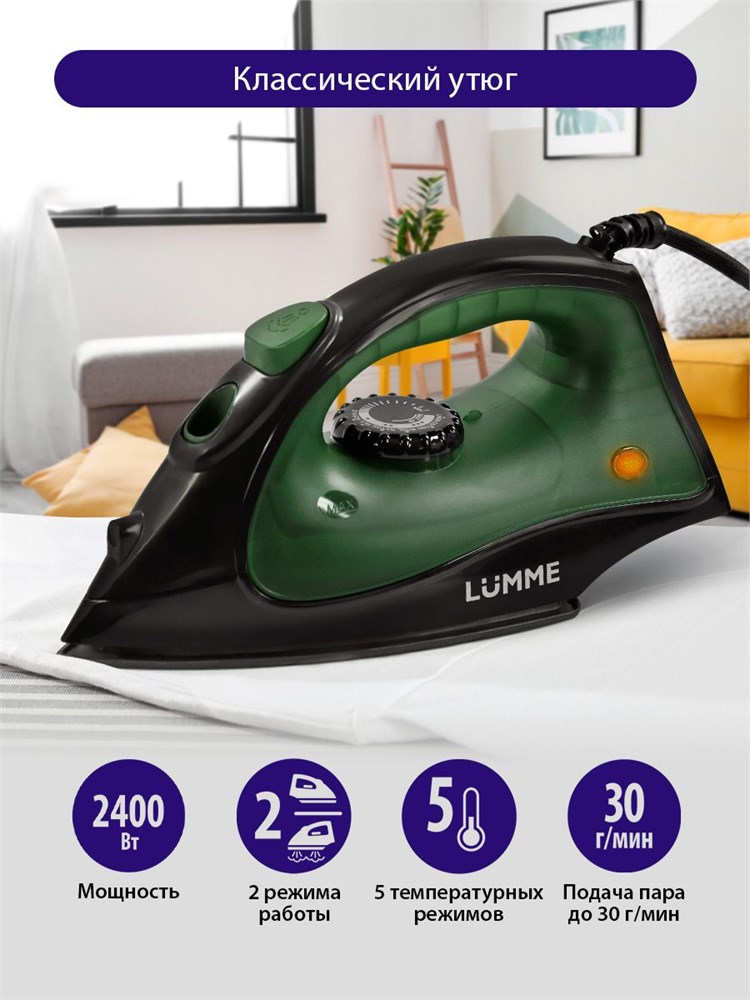 Утюг LUMME мощностью 1800 Вт с покрытием из тефлона и темным хризолитом с доставкой по всему Худжанду, по Бохтару, по Душанбе и по всем регионам Таджикистана.