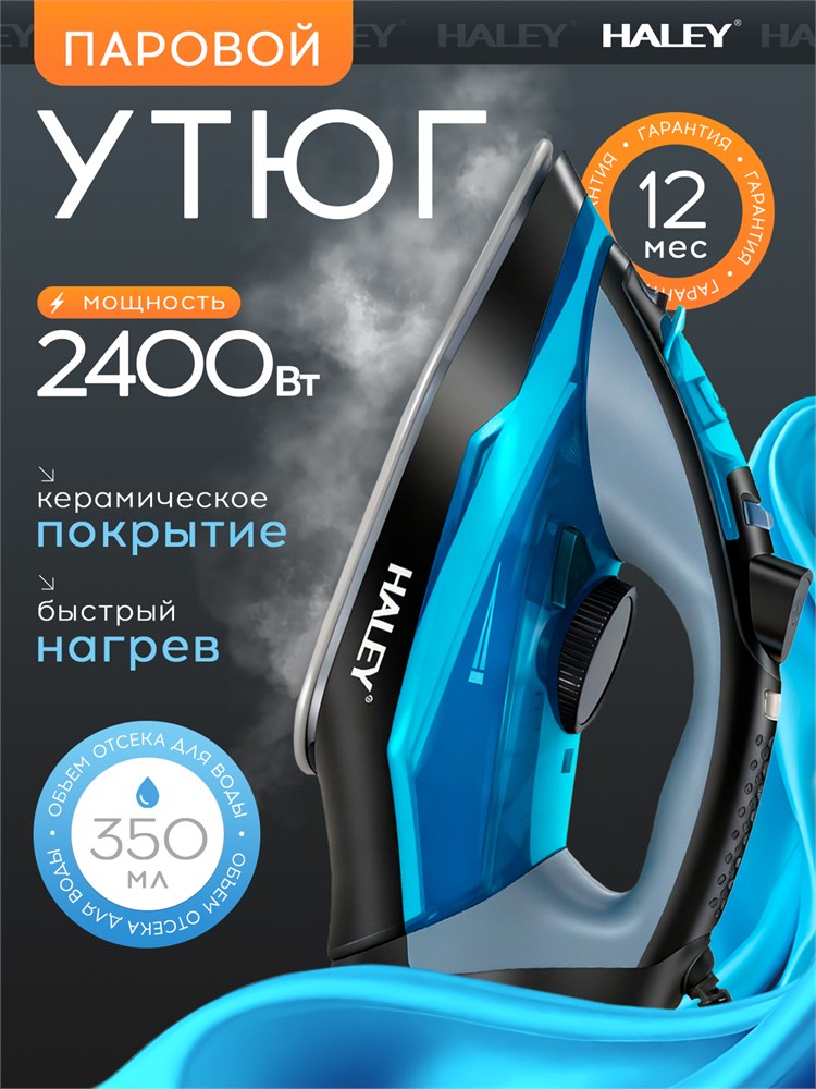 Утюг для одежды с паром объемом 350 мл и мощностью 2400 Вт