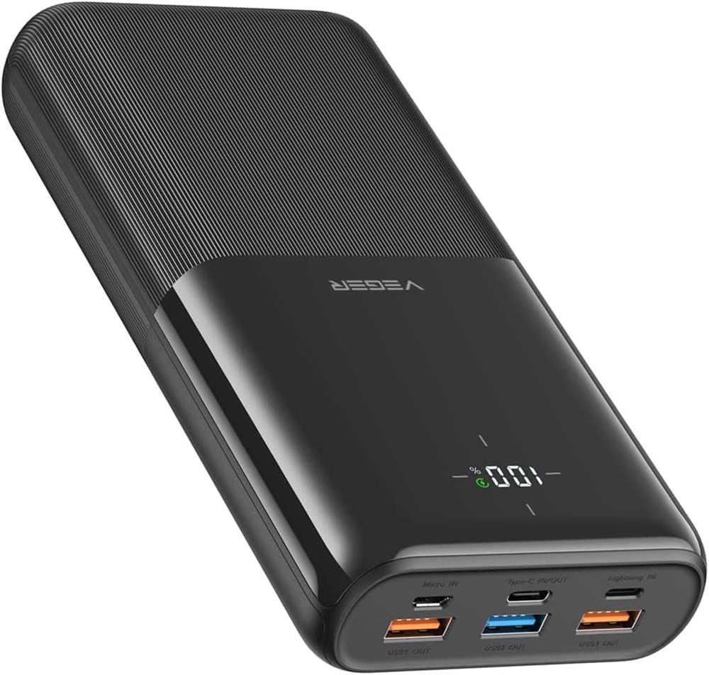 Портативное зарядное устройство VEGER Power Bank 30000 мАч, 22,5 Вт QC 3.0 PD 20 Вт USB 6-портовое зарядное устройство с током 3 А для быстрой зарядки, аккумулятор USB C, интеллектуальный светодиодный дисплей для iPhone, Samsung, Android и т. д.