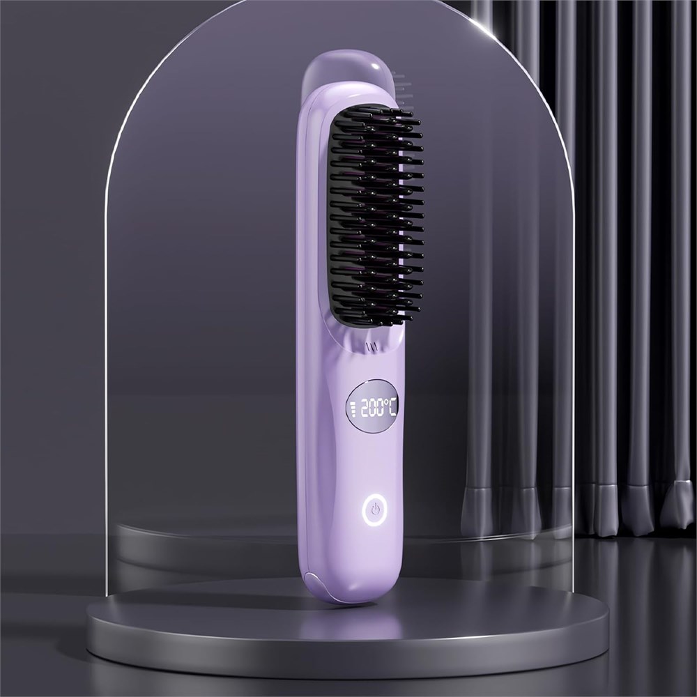 Беспроводная щетка-выпрямитель для волос, дорожный выпрямитель для волос, заряжается через USB, имеет ЖК-дисплей и регулируемую температуру, подходит для использования дома и в салоне, портативный и компактный (фиолетовый)