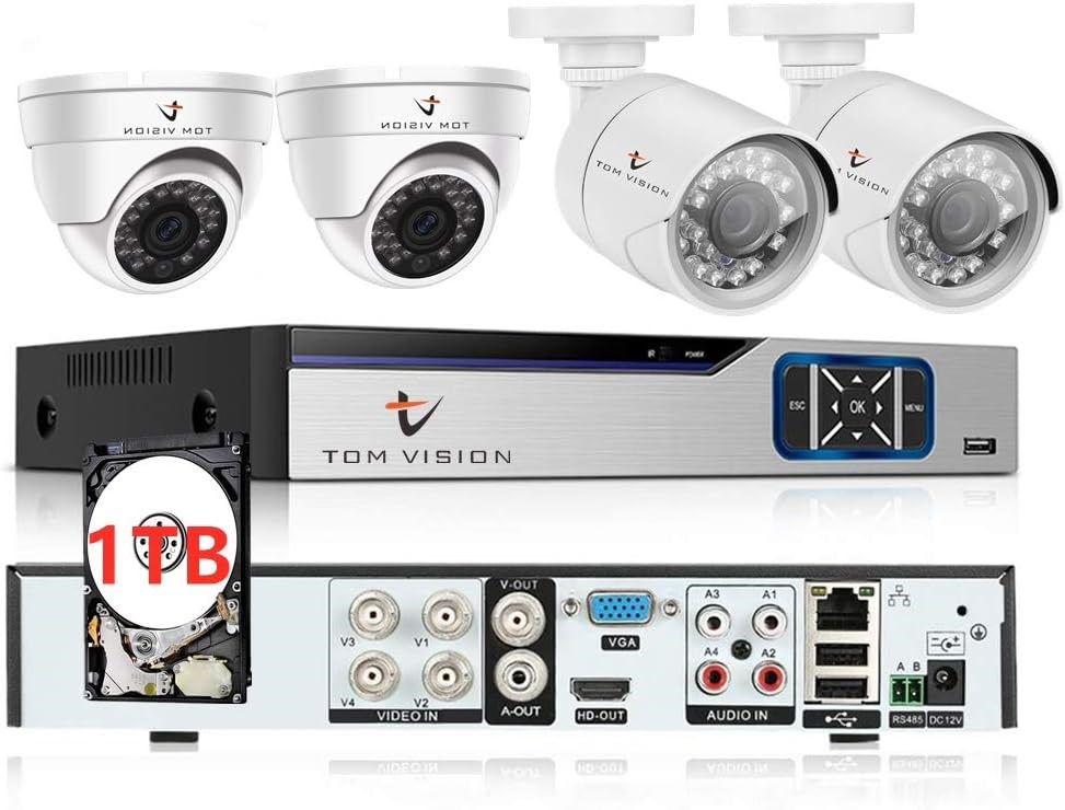 XBW 2-мегапиксельная 4-канальная система домашней безопасности, комплект видеорегистратора с 2 купольными/внутренними камерами и 2 цилиндрическими/наружными камерами (4-канальный жесткий диск на 1 ТБ)
