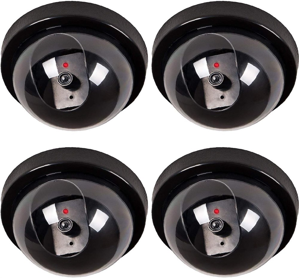 Муляжи камер видеонаблюдения XBW (4 шт., черные) с реалистичным изображением, мигающим красным светодиодом для использования внутри и снаружи помещений, для дома и бизнеса